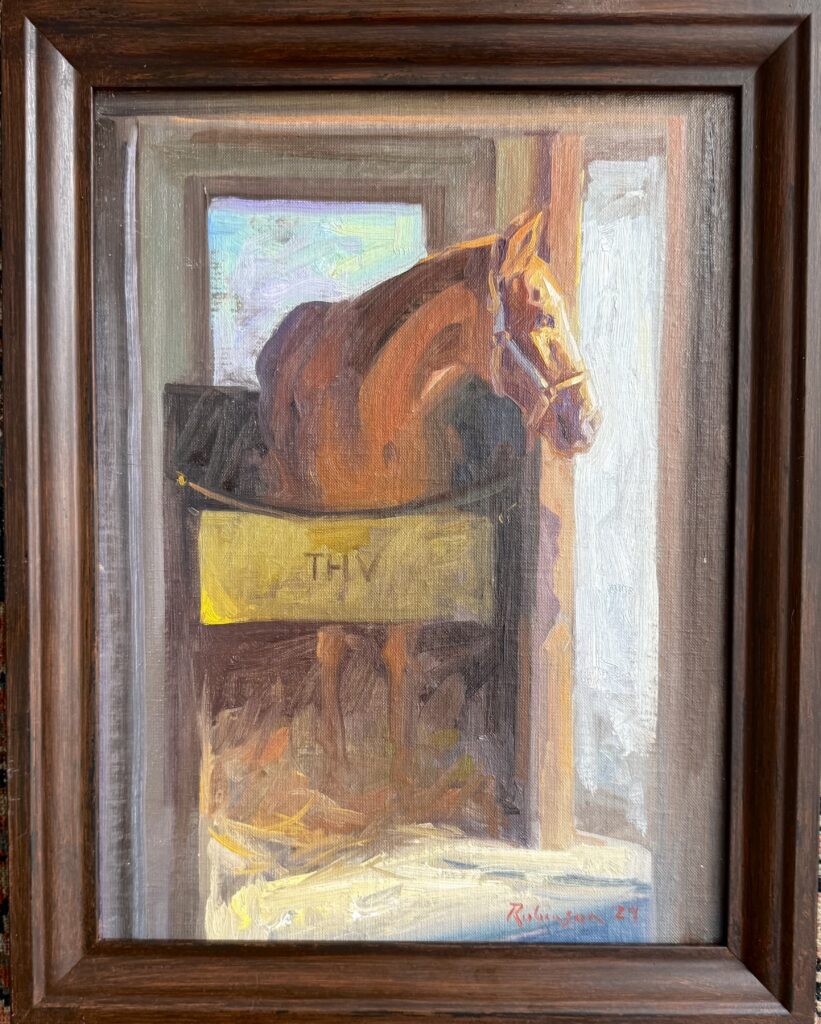 Sam Robinson – “Sunny Stall” oil on canvas 12 x 16